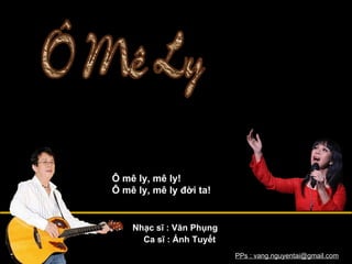 Bài hát 'Ô mê ly' của nhạc sĩ Văn Phụng và ca sĩ Ánh Tuyết thể hiện niềm yêu đời và hạnh phúc qua âm nhạc giữa thiên nhiên. Những hình ảnh về mưa, nắng và cánh đồng lúa tạo nên không khí vui tươi và gần gũi với quê hương. Tình cảm mãnh liệt với cuộc sống và âm nhạc là chủ đề chính trong lời bài hát.