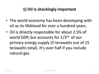 Oil is crucial to the global economy, responsible for a significant portion of energy supply and GDP, while its absence could lead to societal collapse. The industry is vast, with immense infrastructure and challenges in transitioning to renewable energy sources. Despite common beliefs about oil companies' profits, they operate on thin margins and face increasing costs, while most actual profits go to foreign national oil firms.