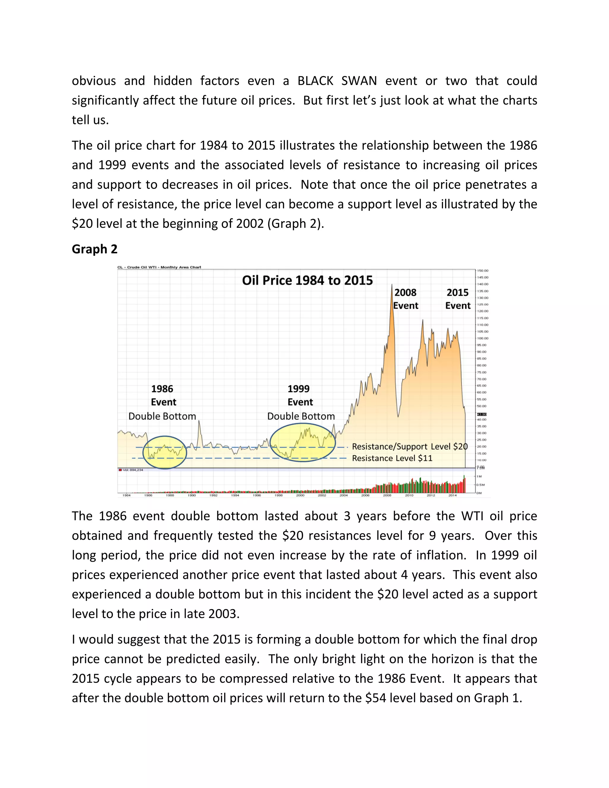 1) The document analyzes factors that could impact future oil prices over the next 4-6 years based on historical price events in 1986 and 1999.