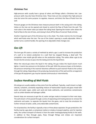 2) Key equipment at the wellhead like the casing head, tubing head and Christmas tree that control flow.