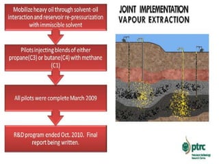 The document summarizes various methods for oil recovery from reservoirs, including primary, secondary, and tertiary (enhanced) recovery. Primary recovery uses the natural reservoir pressure to extract about 20% of oil. Secondary methods like water flooding can recover 25-35% of oil by increasing reservoir pressure. Tertiary recovery methods apply additional techniques like steam injection or microbial injection to reduce viscosity and extract further oil, recovering up to 50-60% of the total. The document provides details on different secondary and tertiary techniques used to maximize oil recovery from reservoirs.