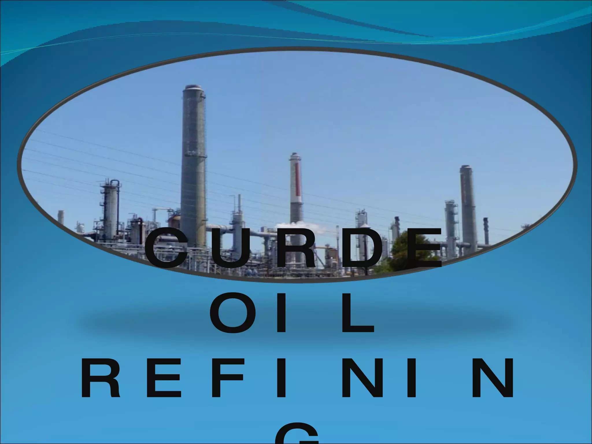 The document discusses the process of oil refining. Crude oil enters the refinery and is separated into fractions through fractional distillation in distillation towers. It then undergoes additional processes like heating, cooling, and chemical processes. The fractions are treated to remove impurities and blended to produce useful products like gasoline, diesel, kerosene, and others which are then stored for shipping and distribution.