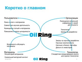Документ описывает инновационную научную среду для нефтегазовой отрасли, выделяя важность совместной работы ученых, студентов и организаций для повышения индекса цитируемости и доступа к актуальным научным материалам. Участники проекта, включая 14 нефтегазовых вузов России и ряд международных организаций, смогут размещать уникальный контент и проводить обучение. Основное внимание уделяется созданию платформы для обмена знаниями, инновациями и привлечением инвестиций.