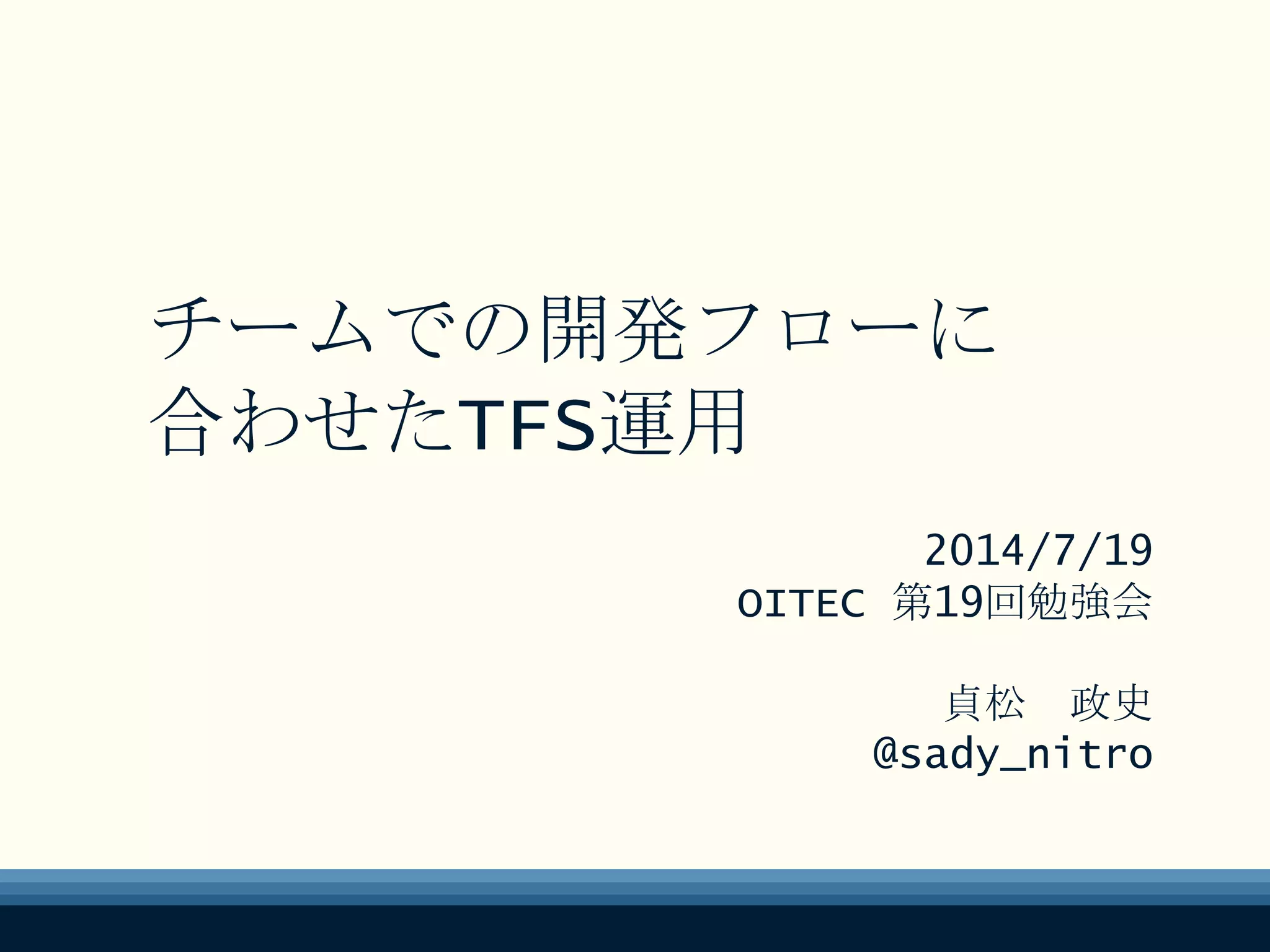 チームでの開発フローに 合わせたTFS運用 2014/7/19 OITEC 第19回勉強会 貞松 政史 @sady_nitro