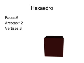 This document defines and provides information about several geometric shapes including a hexahedron, tetrahedron, octahedron, dodecagonal pyramid, and dodecahedron. For each shape, it lists the number of faces, edges, and vertices that define the shape's structure.