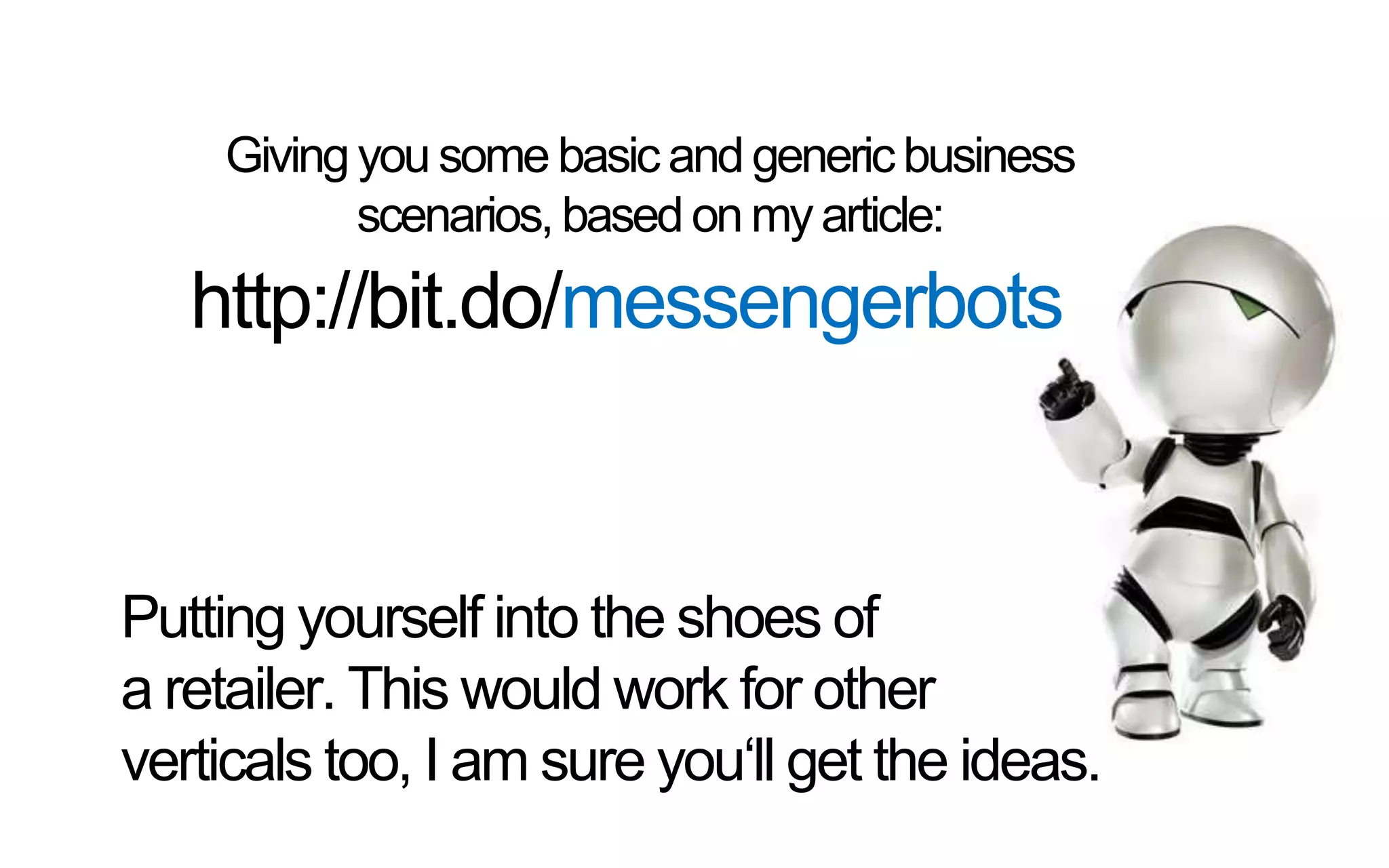 The document discusses various scenarios for using chatbots, particularly on Facebook Messenger, to enhance retail experiences, such as auto-filling shopping baskets using recipe databases and extending marketing reach through consumer interactions. It presents examples like loyalty opt-in strategies, social media competitions, and leveraging customer identity for personalized experiences. The document emphasizes the importance of engaging consumers and maintaining a dialogue to maximize the effectiveness of chatbots.