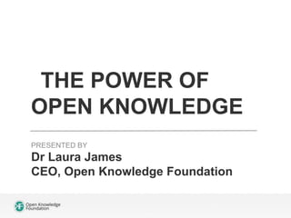 The document discusses the work of the Open Knowledge Foundation (OKF) in making knowledge open and accessible through open data initiatives. The OKF builds tools to work with open data, connects people and organizations, and provides training and resources through their School of Data. Open data has led to benefits like helping firefighters locate homes more easily and reducing infant mortality and improving health outcomes in Uganda. The OKF argues that open data can help solve global problems by giving choice, transparency, and allowing ideas to spread and scale more easily. They encourage people to get involved in helping create a more open knowledge society.