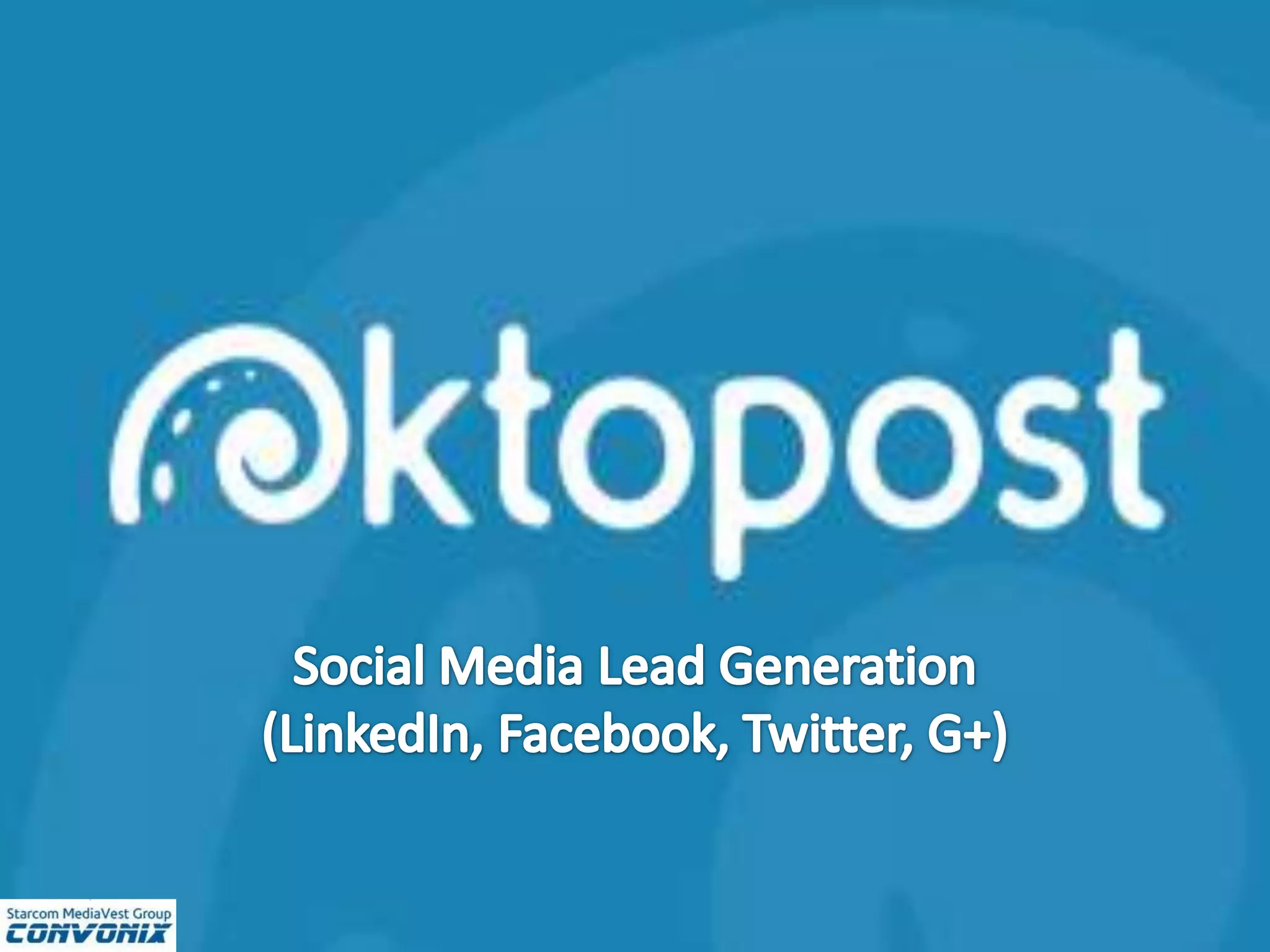 The document compares Hootsuite, designed for B2C, with Oktopost, tailored for B2B social media management. Oktopost offers features like scheduling posts in LinkedIn groups, tracking social leads from click to sale, and campaign analytics for measuring social media campaign success. It integrates with platforms like Google Analytics and Salesforce, facilitating comprehensive management and analysis of social media engagements.