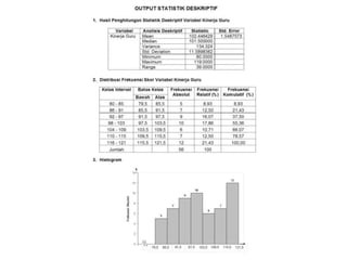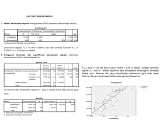 The document presents statistical analysis results using SPSS, focusing on various variables, including population and agricultural productivity, in Kurangji before and after the Padang earthquake. It includes findings from a one-sample Kolmogorov-Smirnov test and provides unstandardized coefficients for a linear regression model. The analysis indicates a significant change in agricultural land and related factors due to the earthquake, with descriptive statistics summarizing the data distribution.