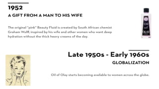 The document discusses the competitive landscape of the global skincare market, highlighting key players such as Procter & Gamble's Olay, L’Oréal, and Neutrogena, along with market trends and consumer behaviors, particularly in China and the U.S. It examines the challenges Olay faced in maintaining its brand identity and consumer appeal amid rising competition from direct-to-consumer brands and Korean beauty products. Strategies proposed for Olay included optimizing its product portfolio, targeting younger demographics, and reducing product confusion to revitalize brand sales.