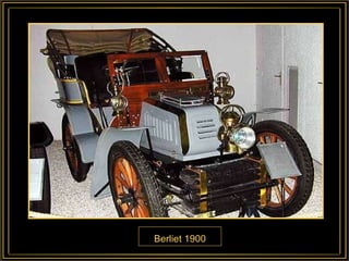 The document lists various classic and vintage cars from 1900 to 1939, including early models from brands like Berliet, Oldsmobile, Cadillac, Ford, Rolls Royce, Duesenberg, and others. It provides years and basic body style descriptions for each car listed.