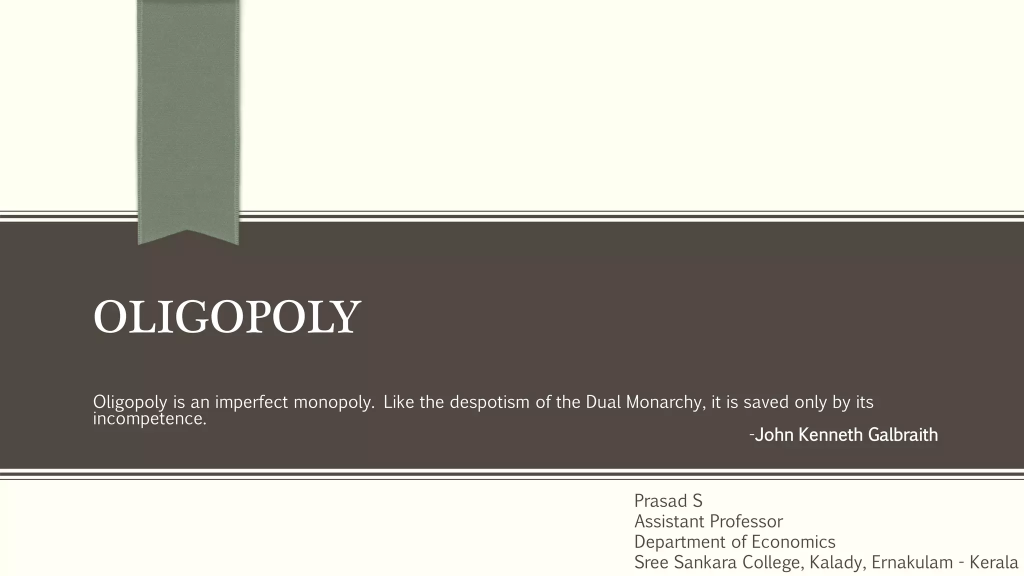 Oligopoly is a market structure characterized by a small number of firms that control the entire market, influencing pricing and output due to their interdependence. It can be categorized into pure oligopoly (homogeneous products) and differentiated oligopoly (differentiated products), with features including barriers to entry and potential for collusion. The document also discusses various models of oligopoly, including non-collusive and collusive oligopoly, as well as game theory applications that explain strategic interactions among firms.