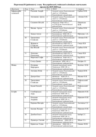 Переможці ІІ (районного)етапу Всеукраїнської учнівської олімпіадиз навчальних