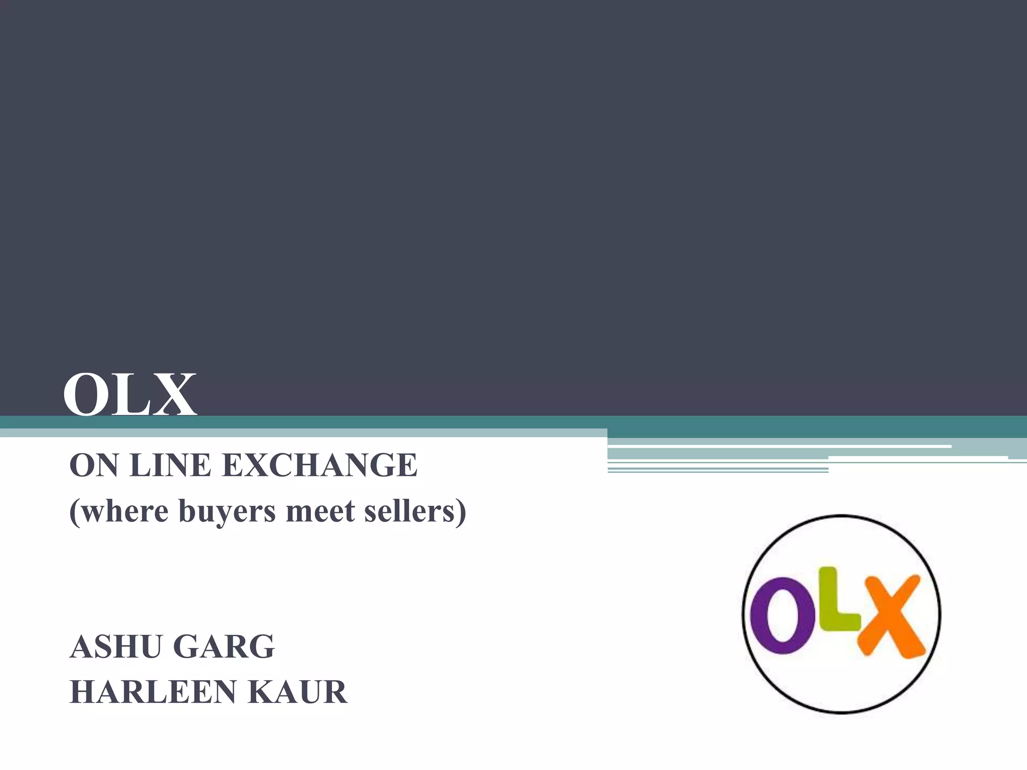 OLX is an online marketplace that allows users to buy and sell used goods. It operates in over 105 countries and has over 100 million visitors. On OLX, users can post free classified listings across 11 categories. The company generates revenue through Google Adsense, featured listings, and a custom search engine. It uses technologies like Apache, Dyn, and Ubuntu to power its platform and keep users' transactions secure.