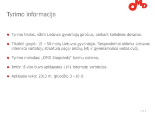Tyrimotikslas: ištirti Lietuvos gyventojų įpročius, perkant kalėdines dovanas.