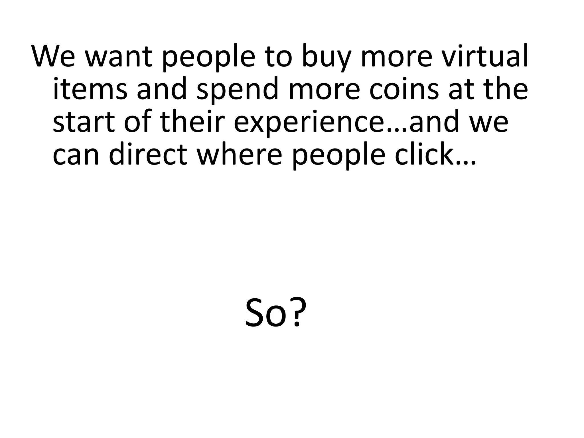 - By analyzing user data using decision trees, they found paying users had different experiences than non-paying users, spending more virtual currency on items.
