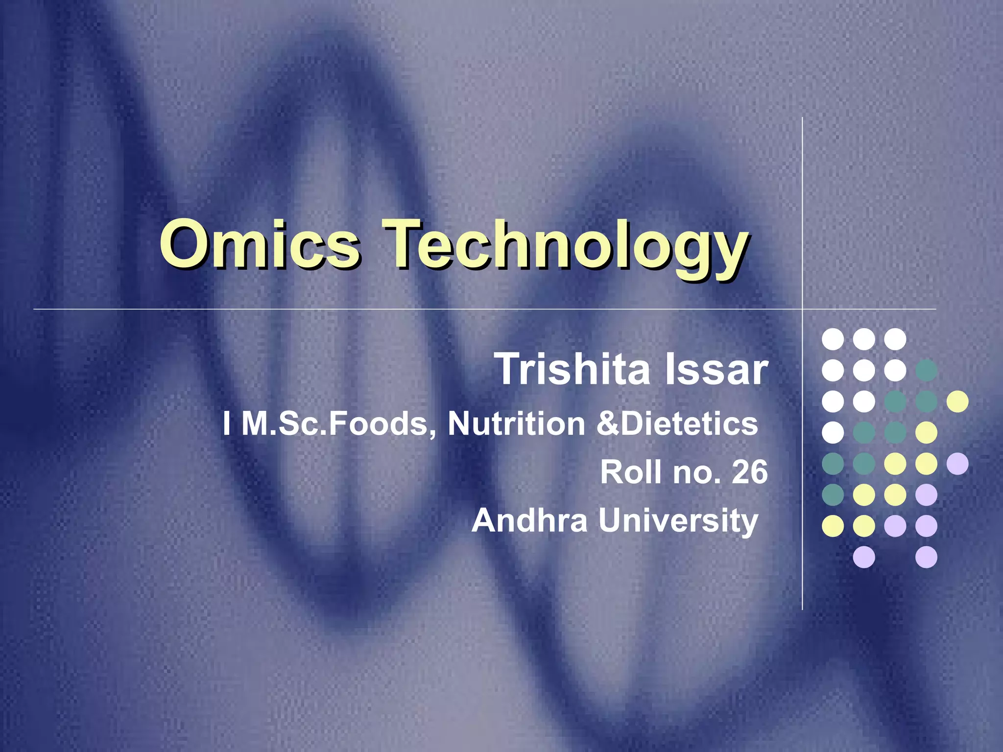 The document discusses omics technology and its various applications in the field of nutrition. It defines omics as the comprehensive study of biological systems using techniques like genomics, transcriptomics, proteomics and metabolomics. Nutrigenomics applies these omics approaches to study how food and dietary components influence gene expression. Key applications mentioned include using nutrigenomics to develop foods that can prevent and treat diseases by modulating gene expression, and analyzing gene-diet interactions that could increase risk of conditions like diabetes.
