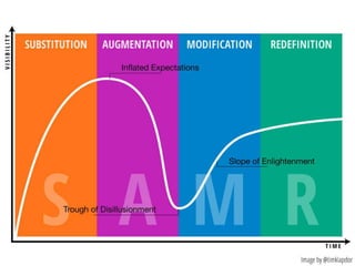 This document discusses the changing landscape of education and teaching in today's digital world. It notes that the number of internet and social media users has grown significantly, with over 2.5 billion people online and 1.9 billion using social media. It emphasizes that teachers can no longer work in isolation, but must connect with other educators and experts. An effective teacher is always learning, uses technology and visuals effectively, allows students choice and creativity in projects, and links learning to real-world issues. The focus for teachers should be on pedagogy, content and understanding student contexts rather than just integrating new technologies. The goal is for every student to find their passion and want to come to school.