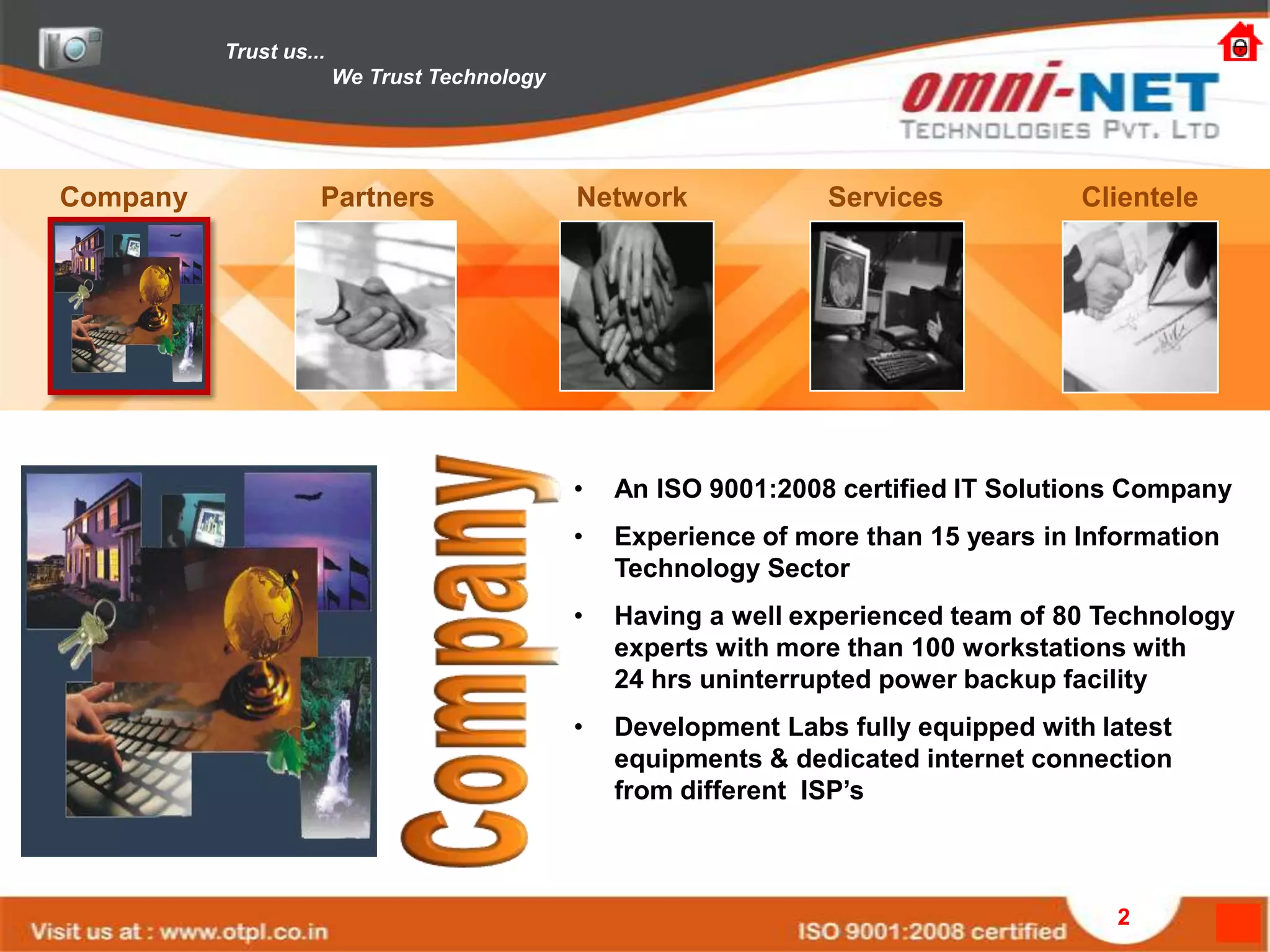 The document outlines the services and expertise of an ISO 9001:2008 certified IT solutions company with over 15 years of experience, specializing in software development, website design, and data digitization for various government and corporate sectors across Uttar Pradesh. It details their presence in multiple cities, highlights collaborations with various government departments since the late 1990s, and lists a wide range of projects and clients within education, healthcare, and industry sectors. The company employs a team of 80 technology experts and is equipped with state-of-the-art infrastructure to support their operations.
