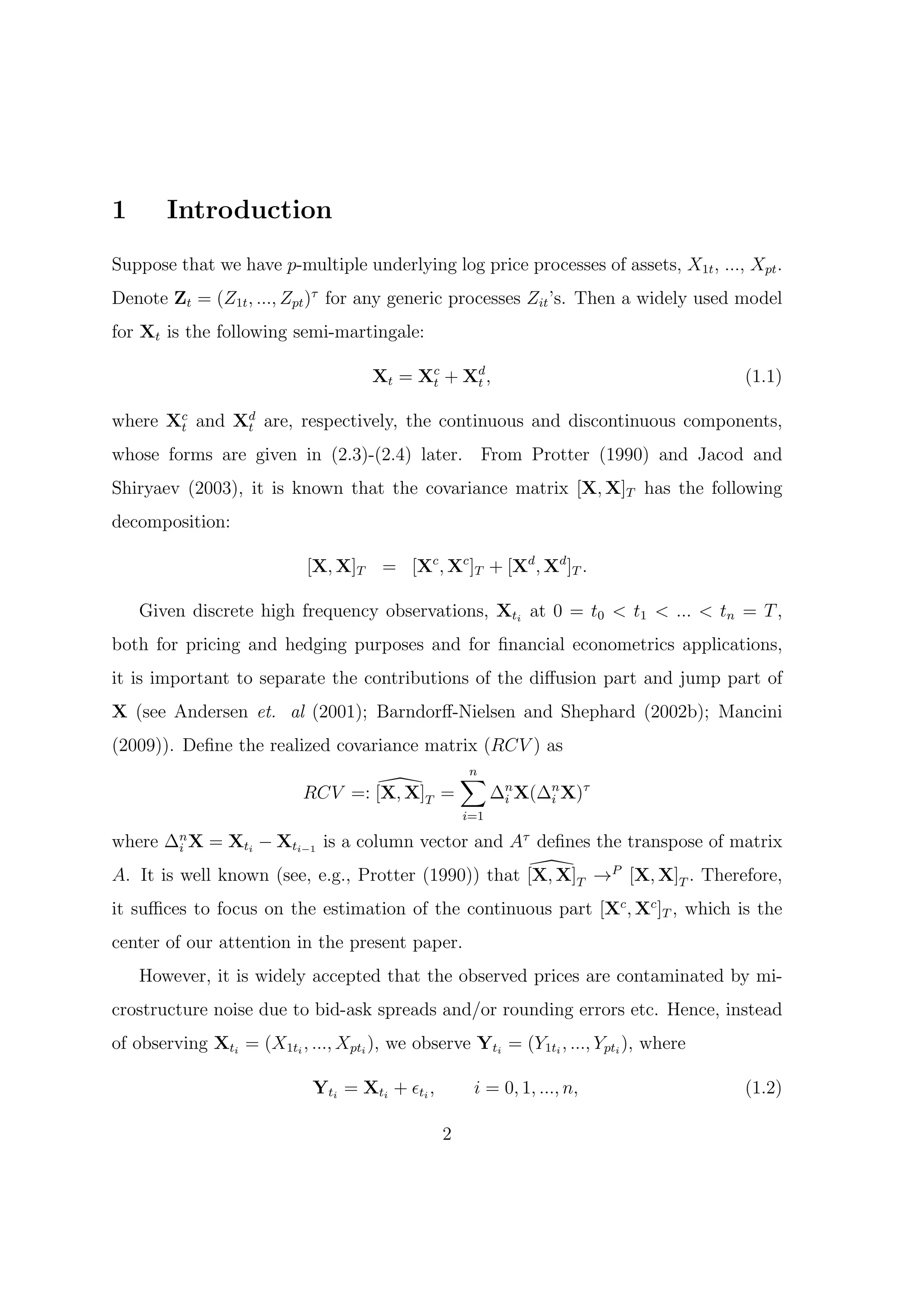 It considers two cases - when the jump processes of the two assets are independent, and when they are dependent. For the independent case, it proposes an estimator that is robust to jumps. For the dependent case, it proposes a threshold estimator that combines pre-averaging to remove noise with a threshold method to reduce the effect of jumps. It proves the estimators are consistent and establishes their central limit theorems. Simulation results are also presented to illustrate the performance of the proposed methods.