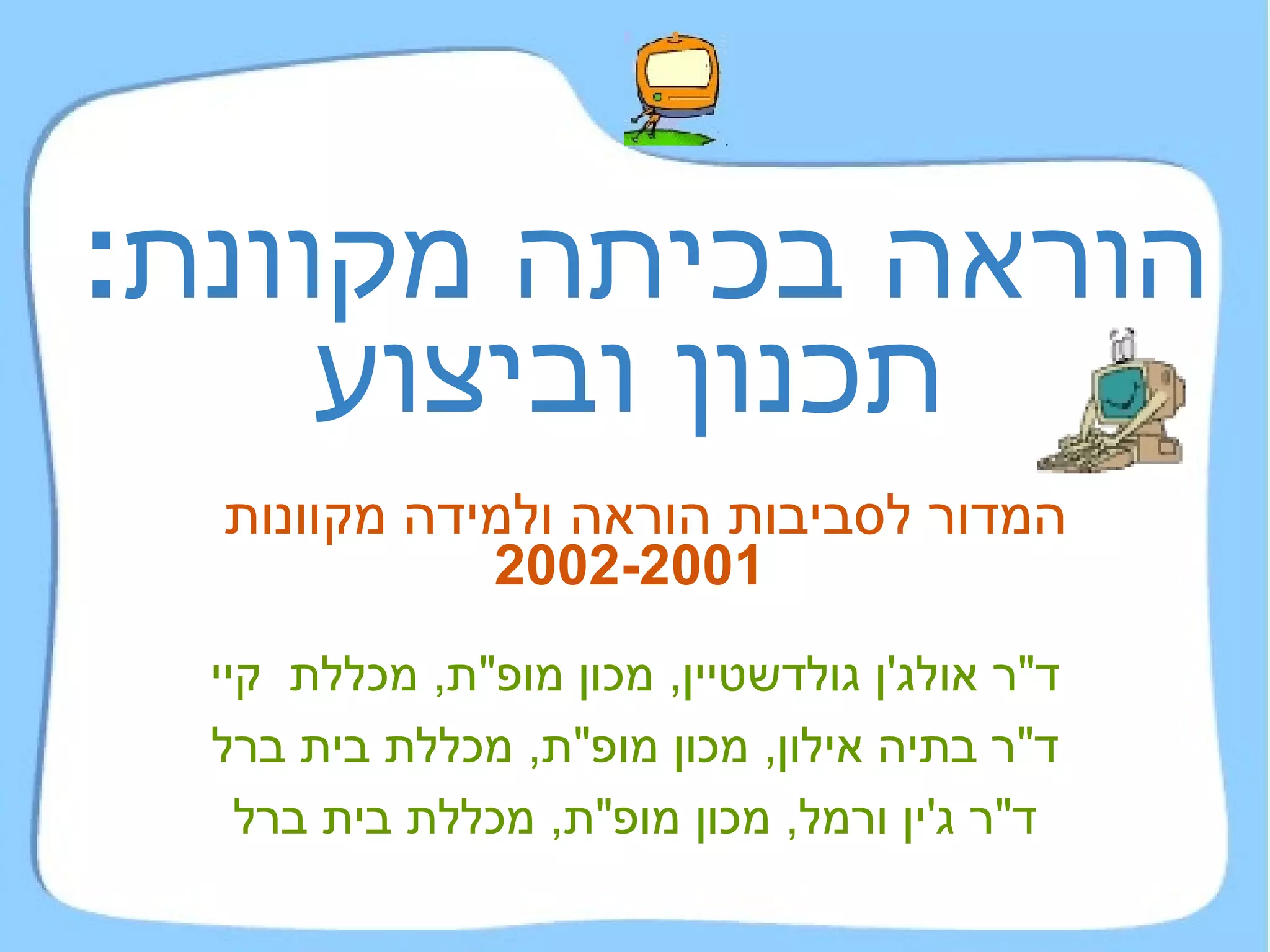 לקחים מהוראת הקורסלאוכלוסיית מורי המורים יש רצון ויכולת להשתתף בקביעת תכני הקורס המורים מפיקים תועלת רבה מחשיפה לניסיון של עמיתיהם עומס למנחות ולמשתתפים לכן צריך שילוב מתאים בין הוראה קונסטרוקטיביסטית מול הוראה מובנית למורים רקע וציפיות שונים מהקורס קורסים שונים לאוכלוסיות שונות