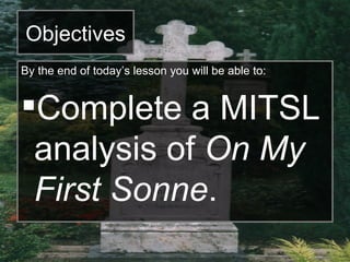 The poem laments the death of the poet Ben Jonson's young son. It describes bidding farewell to his child who was lent to him for seven years before being taken by fate. Jonson expresses sorrow at losing his "best piece of poetry" and son, but also sees death as allowing the boy to escape the hardships of the world.