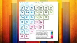 The document outlines best practices for on-page SEO, emphasizing the importance of unique meta titles, descriptions, keywords, and proper tagging for social media. It discusses content quality, structure, and alignment, advocating for a balance of visual and textual elements, as well as adherence to copyright and originality. Additionally, it highlights the need for mobile compatibility, fast loading times, and effective sharing options to enhance user engagement.
