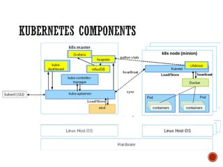 This document discusses best practices for setting up a Docker and Kubernetes environment. It covers topics like Docker storage drivers, Docker networking, Kubernetes authentication and authorization, exposing services, integrating logging and monitoring. The key recommendations are to use OverlayFS or Devicemapper storage, Calico networking, Kubernetes security policies, namespaces and RBAC, and Ingress for exposing services. ETCD backup and fault tolerance is also important.