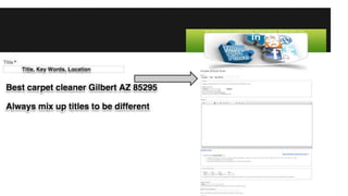 The document outlines various marketing services offered by Ontop Local, including mobile websites, SEO, PPC, and social media consulting. It emphasizes the effectiveness of adding content to a business website and the potential for high visibility on Google through consistent postings. Additionally, it provides information on pricing for customized website setups and marketing packages.