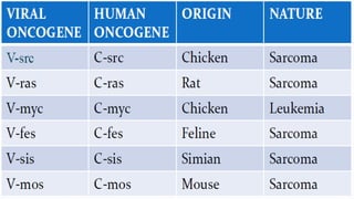 Oncogenic viruses are viruses that can cause cancer. They do so by inserting their DNA into host cells and altering gene expression in ways that promote uncontrolled cell growth and division. Some key points: