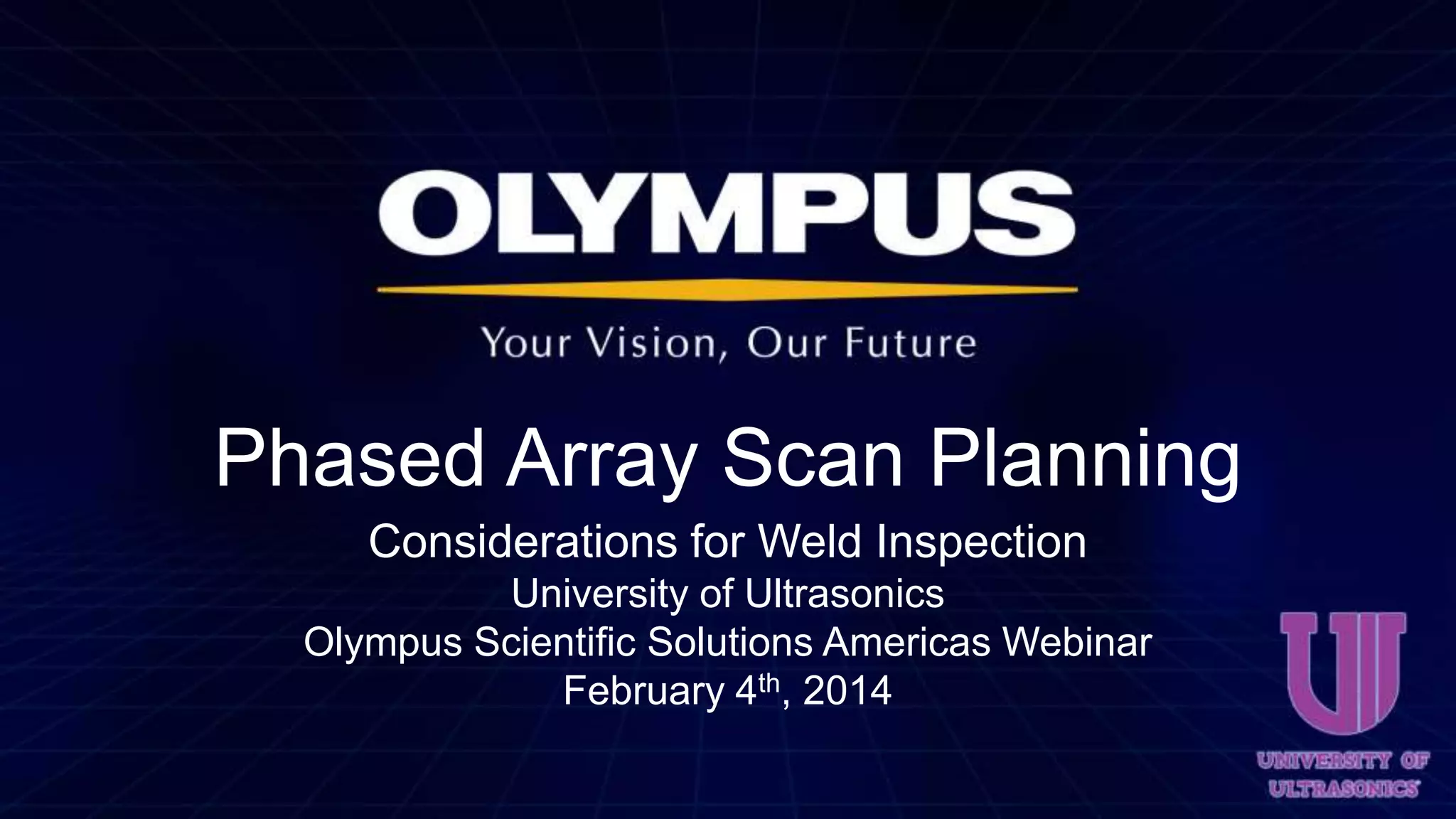 The document outlines key considerations for phased array scan planning in weld inspections, emphasizing the importance of a documented inspection strategy to ensure consistency and repeatability. It discusses variables such as probe selection, focal law configuration, and scanning methodologies, detailing the essential steps for effective coverage of weld joints. Additionally, it examines the complexities and variability inherent in phased array inspections, encouraging meticulous planning to optimize detection of potential flaws.