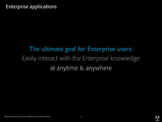 The document discusses building successful enterprise mobile applications. It advocates for (1) user-experience driven development, (2) adopting a user-experience oriented architecture, and (3) cross-platform development to allow applications to work across multiple devices and operating systems. The document provides examples of how various organizations have benefited from focusing on user experience and building applications that are cross-platform.