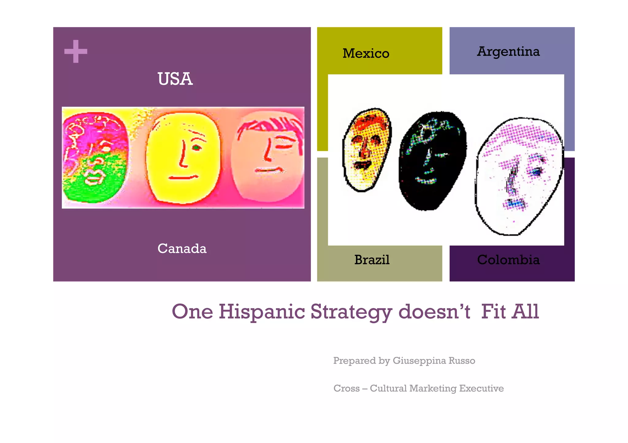 This document discusses strategies for marketing to Hispanic populations in different countries. It notes that there are over 30 million Hispanics in the US and over 400 million Spanish speakers in Latin America. It cautions that assuming "One Hispanic Strategy fits all" is misguided, as countries like Argentina, Brazil, and Colombia have distinct cultures, languages, shopping behaviors, and consumer preferences. The document recommends companies conduct international consumer research to understand geographic, cultural, and linguistic differences when developing strategies to target Spanish and Portuguese speakers across countries.