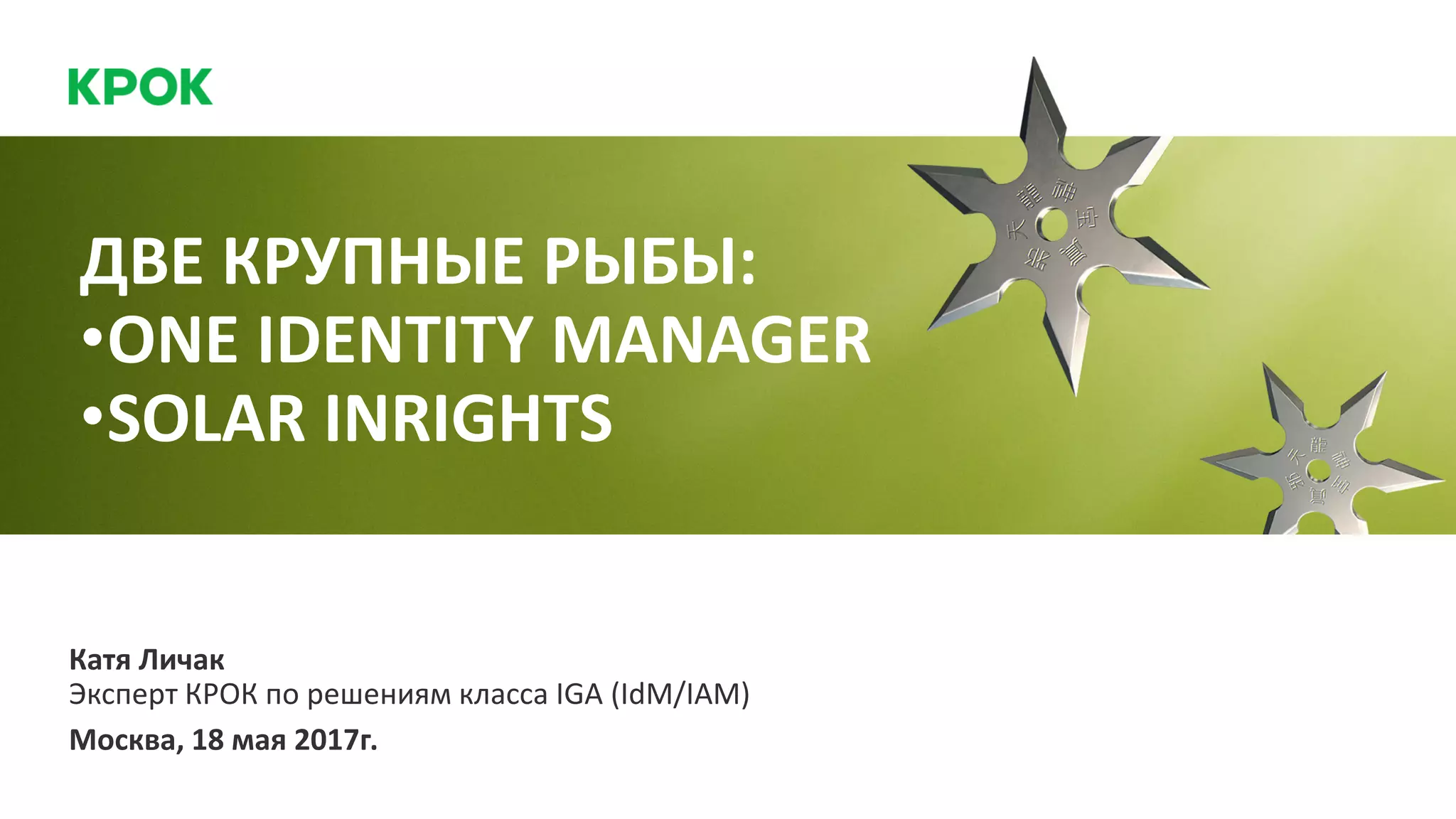Документ представляет собой обзор решений класса IGA (IDM/IAM) от компании КРОК, включая архитектуру, функционал и компоненты систем One Identity Manager и Solar InRights. Он описывает управление доступом, интерфейсы, интеграцию с различными системами и безопасность данных. Также упоминаются возможности настройки и оптимизации систем под разные устройства и ролевые модели доступа.