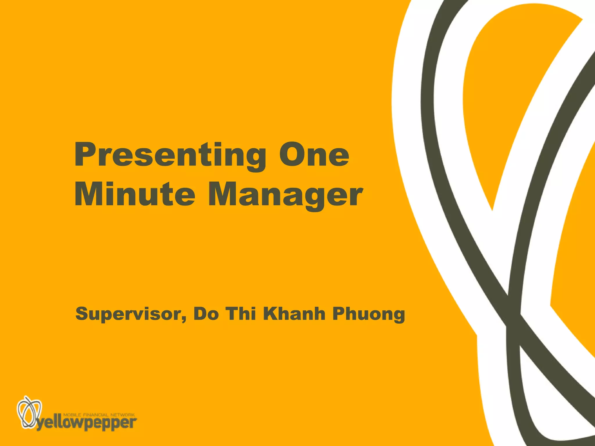 The document summarizes the key concepts from the book "The One Minute Manager" about improving employee performance and productivity. It introduces the three main techniques: having one minute goals to set clear expectations, providing one minute praise when goals are achieved, and one minute reprimands when goals are not met. The summary emphasizes that managing in this simple way, with an emphasis on short focused feedback, can help encourage employees and achieve greater results with less time and effort.