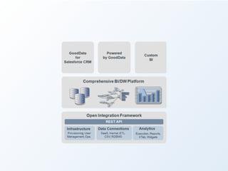 GoodData provides a comprehensive platform for integrating analytics into applications, allowing users to self-serve their data analysis needs without building in-house solutions. The process involves creating data models, loading data, generating reports, and integrating results back into applications. GoodData's tools and APIs, including REST and command-line interfaces, facilitate seamless analytics capabilities for developers.