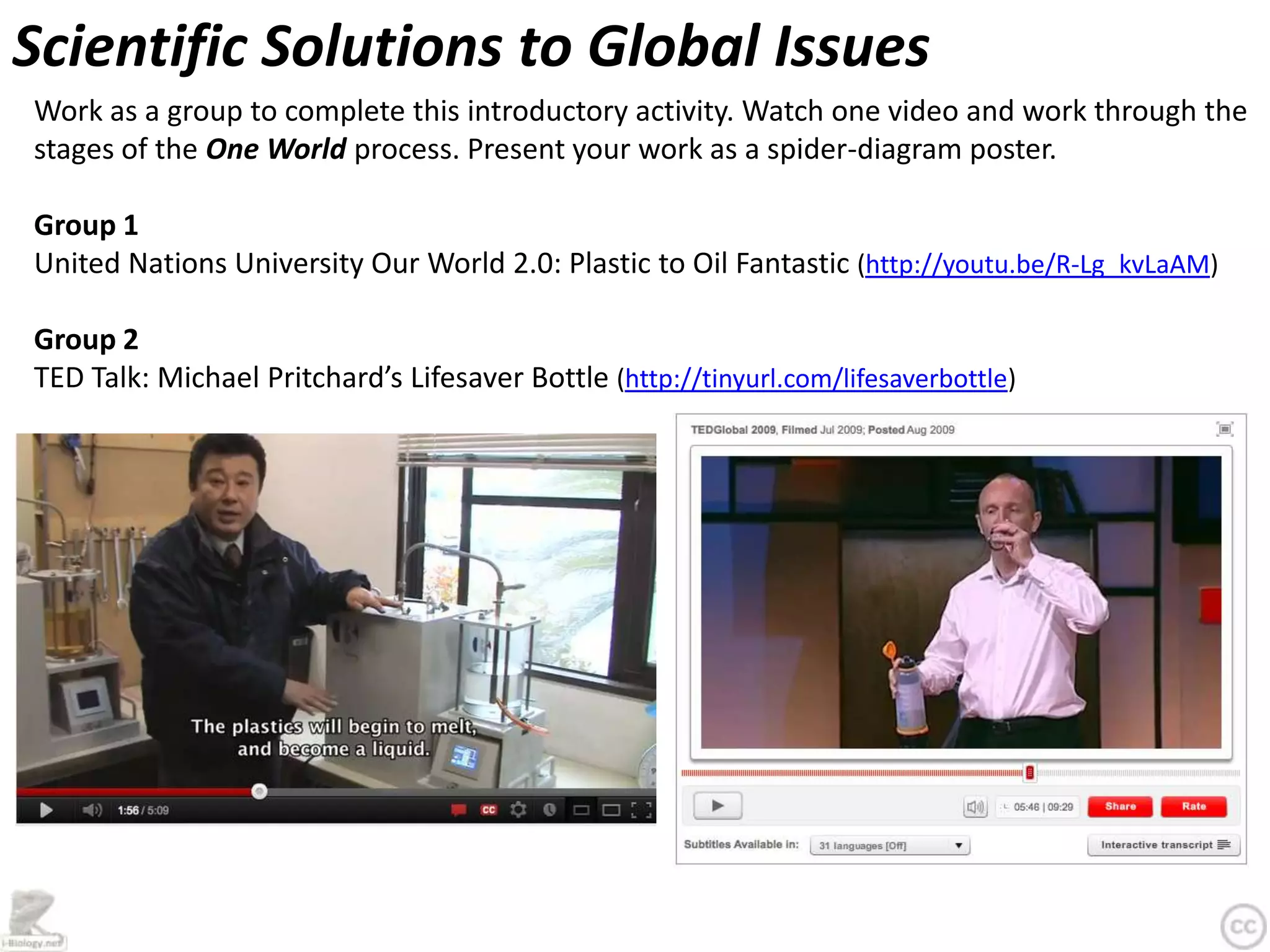 The document provides instructions and resources for students to complete a formative assessment video discussion task on scientific solutions to global issues. Students are divided into groups and assigned a video on a topic such as converting plastic waste to oil. They are instructed to create a spider diagram poster summarizing the video by identifying the problem, proposed solutions, relevant science, stakeholders, and implications. The document emphasizes self-assessment and provides assessment criteria on communication of science. It outlines the process and criteria for a subsequent assignment on exploring how chemistry can solve a local or global problem through a written article.