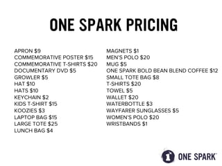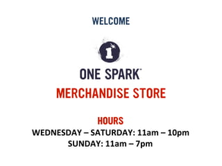 This document provides the hours of operation for a merchandise store from Wednesday to Saturday from 11am to 10pm and Sunday from 11am to 7pm. It then lists various merchandise items available for purchase, such as aprons for $9, commemorative posters for $15, t-shirts ranging from $15-20, DVDs for $5, growlers for $5, hats for $10, keychains for $2, koozies for $3, and other accessories, clothing, and coffee with accompanying prices.