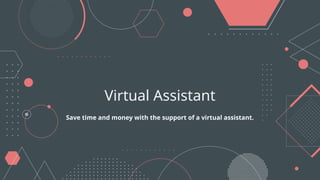 Virtual assistance provides remote administrative, technical, and creative support to businesses, helping them save time and reduce costs. Virtual assistants manage various tasks like scheduling, customer service, and project management, allowing business owners to focus on growth. Key benefits include cost-effectiveness, flexibility, access to global talent, and increased productivity.
