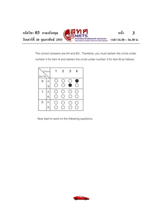 1. The document is a test for English proficiency that contains two parts - speaking and writing ability.