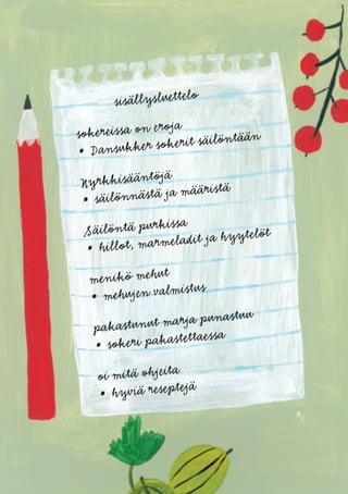 valmistuksessa. Sokeri säilyttää kesän marjojen, hedelmien ja kasvisten maun,