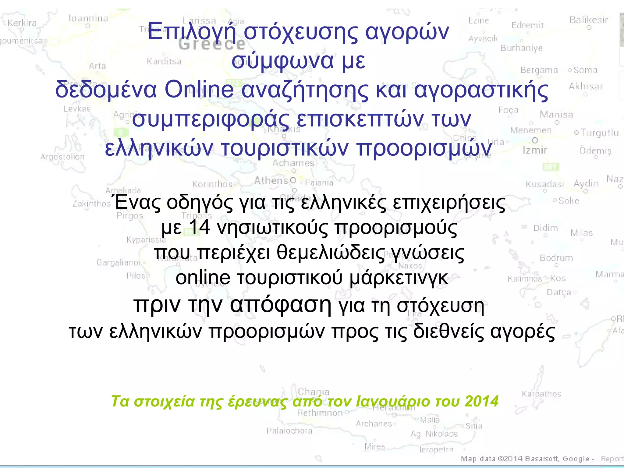 Επιλογή στόχευσης αγορών σύμφωνα με δεδομένα Online αναζήτησης και αγοραστικής συμπεριφοράς επισκεπτών τωνελληνικών τουριστικών προορισμών