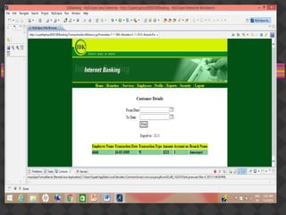 - Customer module for customers to transfer funds, access accounts, send requests.