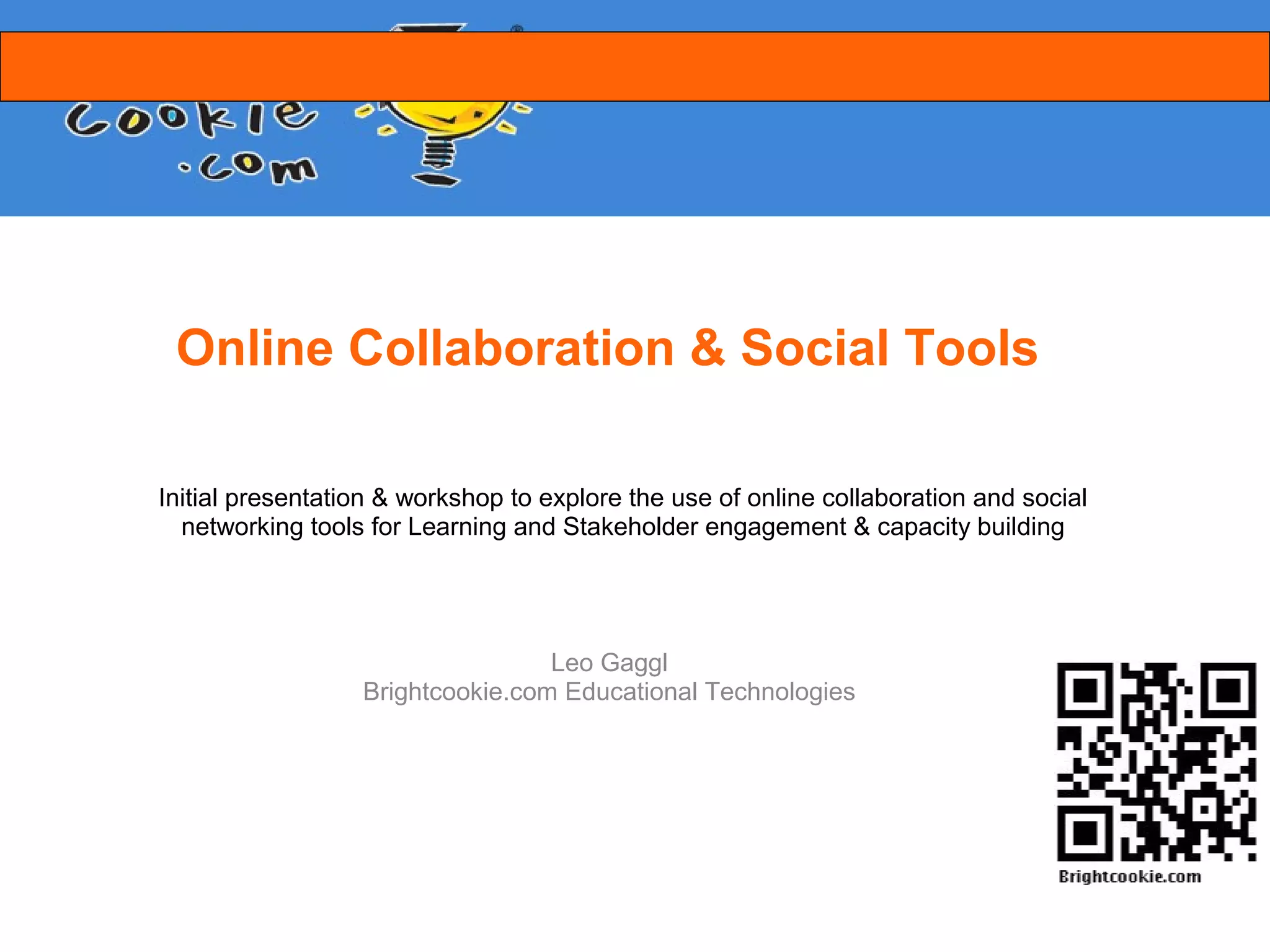 The document presents an initial workshop aimed at exploring online collaboration and social networking tools for educational purposes and stakeholder engagement. It covers various tools for content creation, productivity, networking, and document management, along with links to relevant resources. Additionally, it encourages participants to engage with the presenter through various social media and communication platforms.