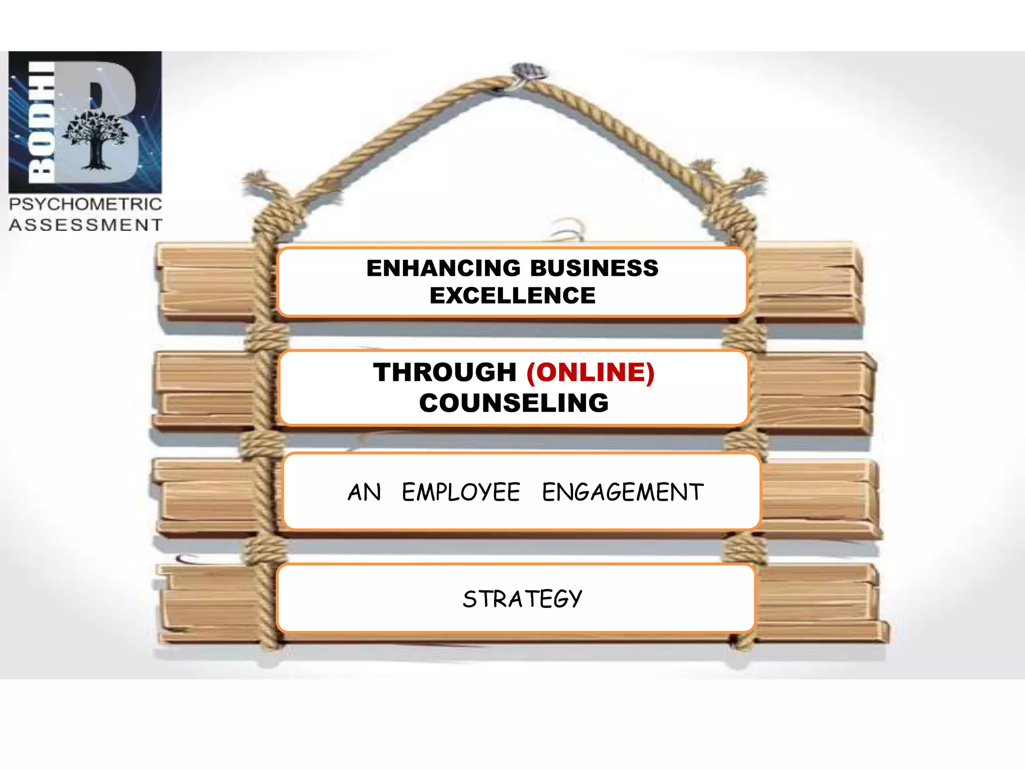 This document discusses an employee engagement strategy of providing online counseling services to enhance business excellence. It proposes that addressing employees' personal problems through a confidential counseling program can improve employee well-being, productivity, commitment, and reduce absenteeism. This in turn would benefit the organization through higher performance, earnings, and satisfaction. The counseling services would be available independently across the country via online modes, and managed professionally while maintaining confidentiality. Regular analysis of trends could help organizations understand employee needs and develop proactive strategies.