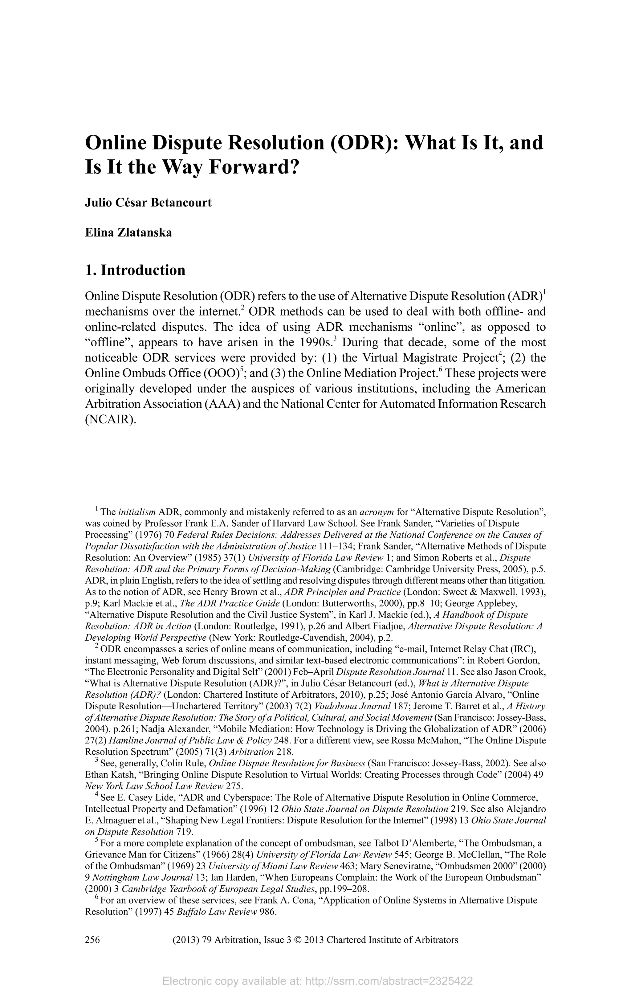 This document provides an overview of online dispute resolution (ODR). It discusses how ODR emerged in the 1990s with early projects using online mechanisms to resolve disputes. ODR allows for ADR methods like negotiation, mediation, and arbitration to occur online. The document outlines how ODR has expanded and been explored by various organizations. It also notes that the EU has taken legislative measures supporting the use of ODR. While ODR aims to improve access to justice, more research is still needed on its effectiveness compared to traditional offline dispute resolution.