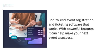 EventBook is an all-in-one event registration and ticketing software that offers customizable features to streamline event registration and maximize success. It includes secure payment processing, real-time sales tracking, comprehensive reporting tools, mobile optimization, and flexible pricing plans. EventBook also provides promotional tools and seamless integration with calendar and social media platforms.