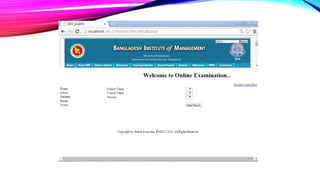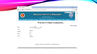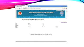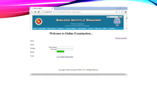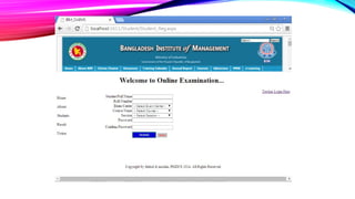 The Online Academic Examination Management System (OAEMS) is a web application designed to facilitate online exams between institutions and students. It allows institutes to register, input exam details, and evaluate student performance efficiently, thus saving time and effort for both parties. The system emphasizes security, providing controlled access and immediate result viewing for registered students.
