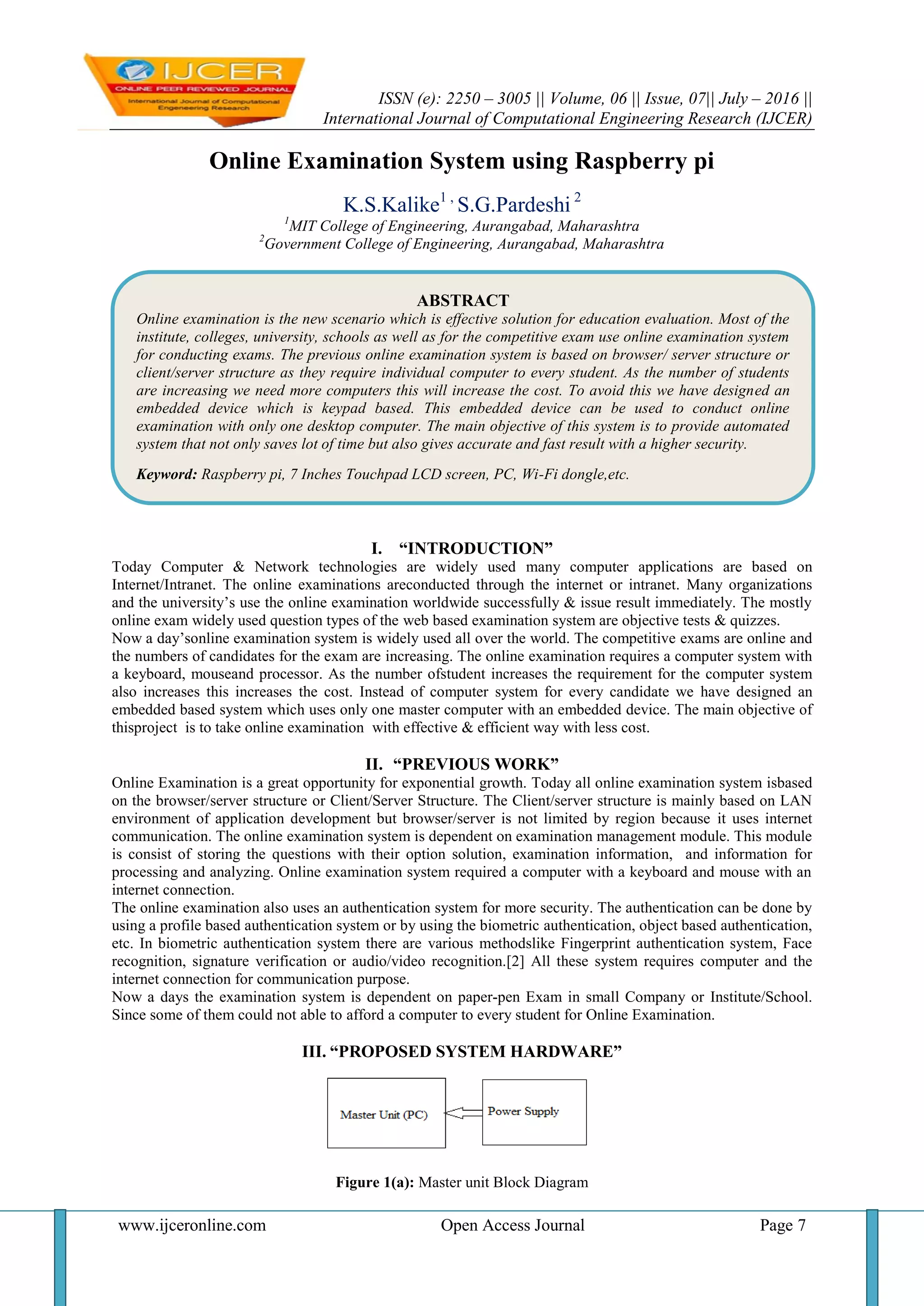 The document proposes an online examination system using Raspberry Pi devices to reduce costs compared to traditional systems that require a computer for each student. The system uses a master computer connected to slave Raspberry Pi devices with touchscreen displays via WiFi. Students take exams on the Raspberry Pi devices, which send and receive exam questions and answers from the master computer. This allows multiple students to take exams simultaneously using only one computer, reducing hardware costs compared to previous online exam systems.