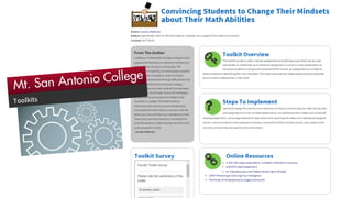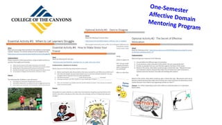 The document discusses the online implementation of AB 705 in mathematics at Coastline Community College, highlighting strategies for improving student success and retention through online courses and support structures. It emphasizes the importance of a supportive learning environment, innovative pedagogy, and adaptability in course design to enhance student engagement and academic performance. The document also outlines specific pathways in college algebra and statistics, detailing assessment methods and the integration of affective domain considerations in teaching practices.